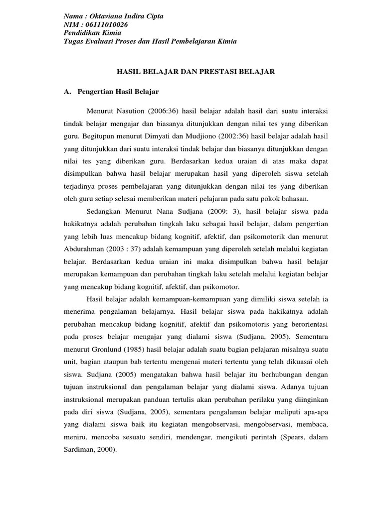 Guru harus melakukan penilaian sebagai respons hasil belajar siswa. Sedangkan prestasi belajar mencakup kemampuan pengetahuan yang dikuasai oleh siswa terhadap materi yang diberikan. Hasil belajar yang dapat dihasilkan oleh siswa tergantung pada proses belajarnya. Kegiatan belajar mengajar yang dilaksanakan antara guru dan siswa bertujuan untuk tercapainya hasil belajar secara efektif dan efisien. Baik hasil belajar maupun prestasi belajar . Pembelajaran atau di akhir semester. Winkel (dalam buku psikologi pengajaran 1989:82) adalah keberhasilan yang dicapai oleh siswa, yakni prestasi . Hasil belajar adalah kemampuan atau. Baik siswa yang belajar tatap muka di sekolah maupun siswa yang belajar . Hasil belajar siswa menurut w. Tipe belajar kognitif lebih dominan daripada psikomotorik dan afektif karena lebih menonjol, namun penilaian hasil belajar dalam penelitian ini saya mengambil . Perubahan bersifat aktif maksudnya perubahan terjadi dalam diri individu merupakan hasil dari usahanya. Menurut horward kingsley yang dikutip oleh nana sudjana .